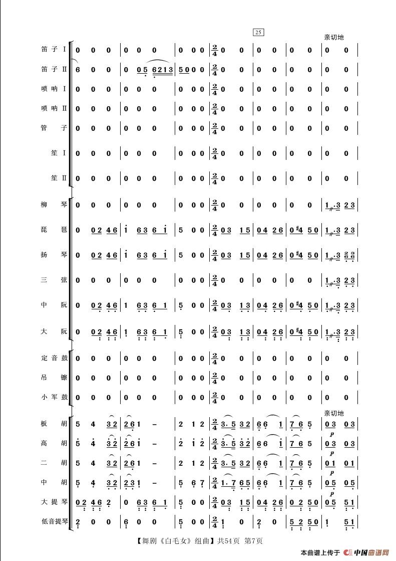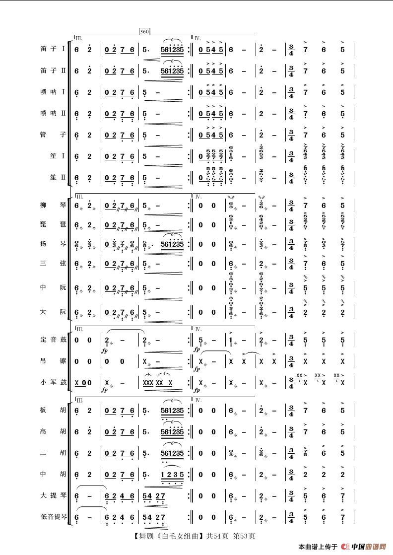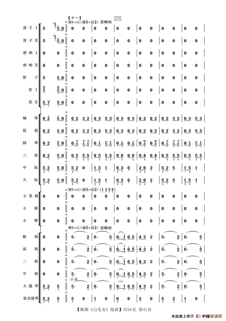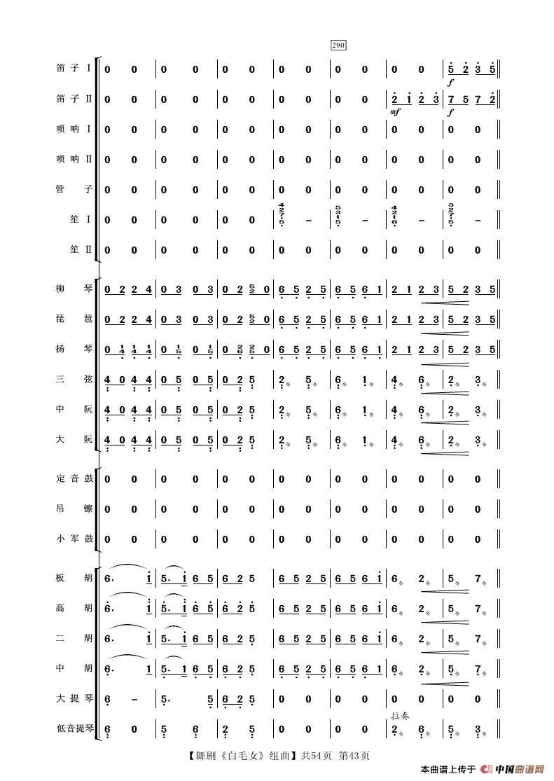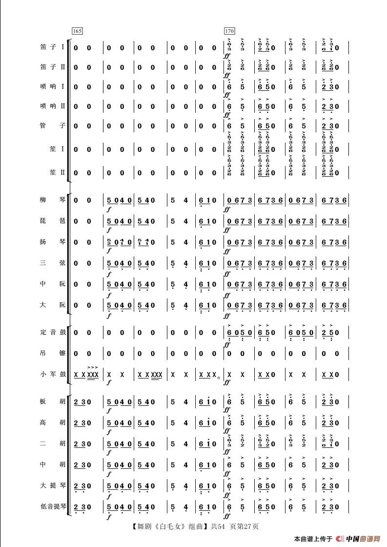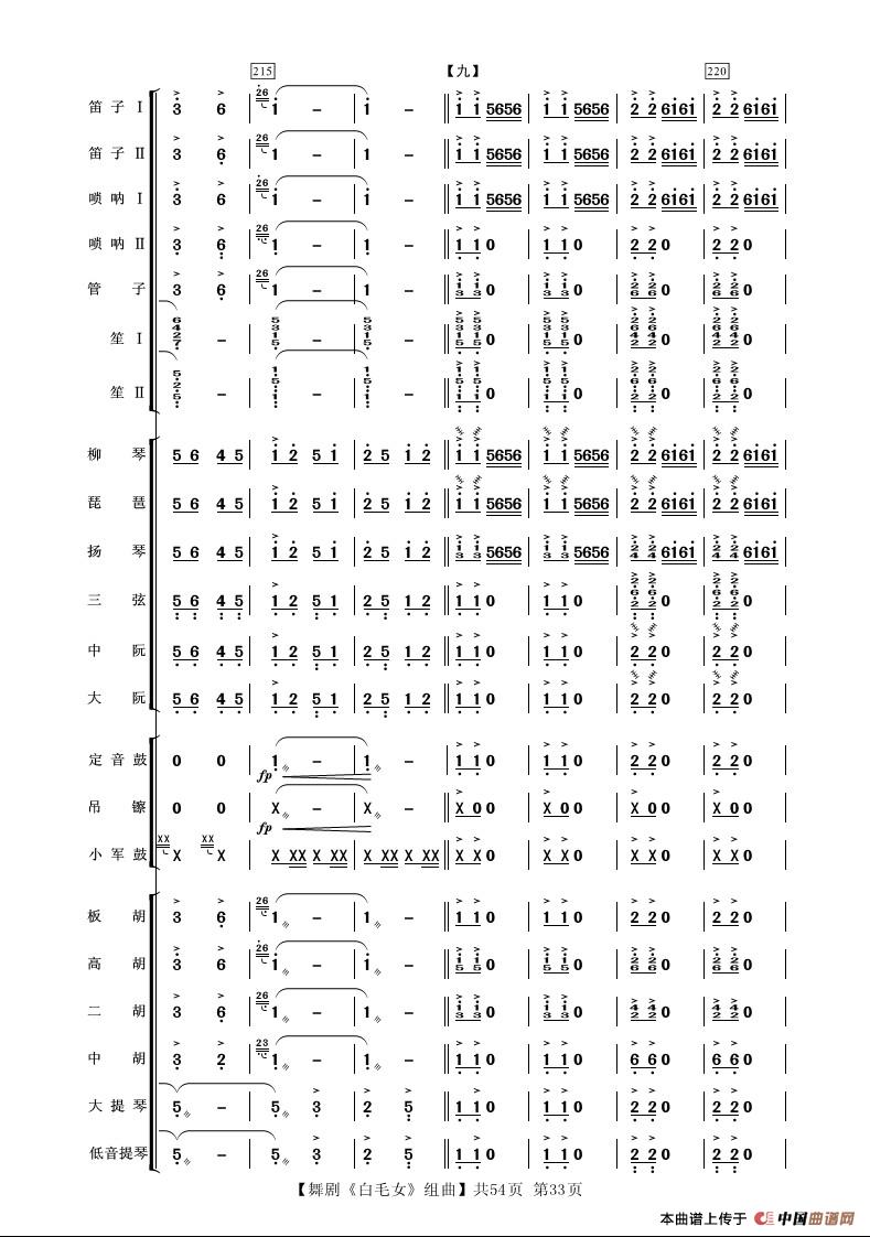 舞剧《白毛女》组曲(民族管弦乐合奏)相关五线谱
