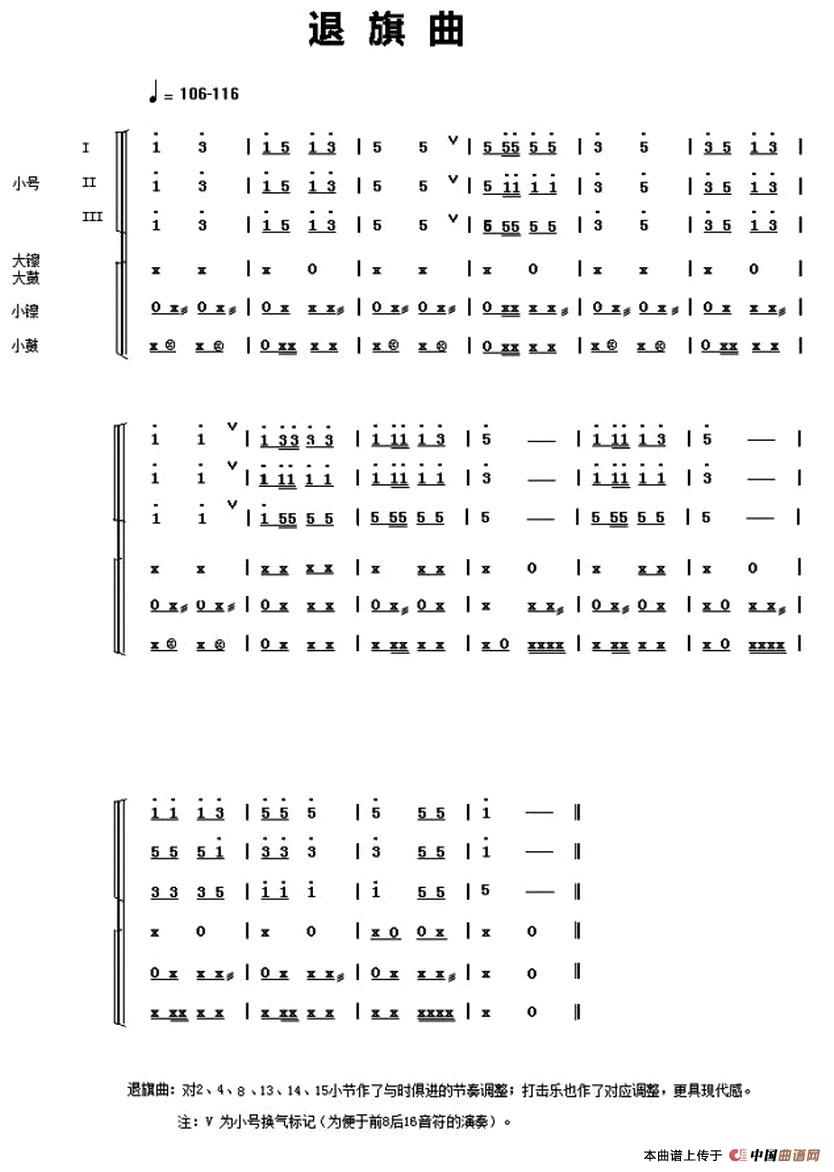 中国少年先锋队鼓号谱:2、退旗曲相关五线谱