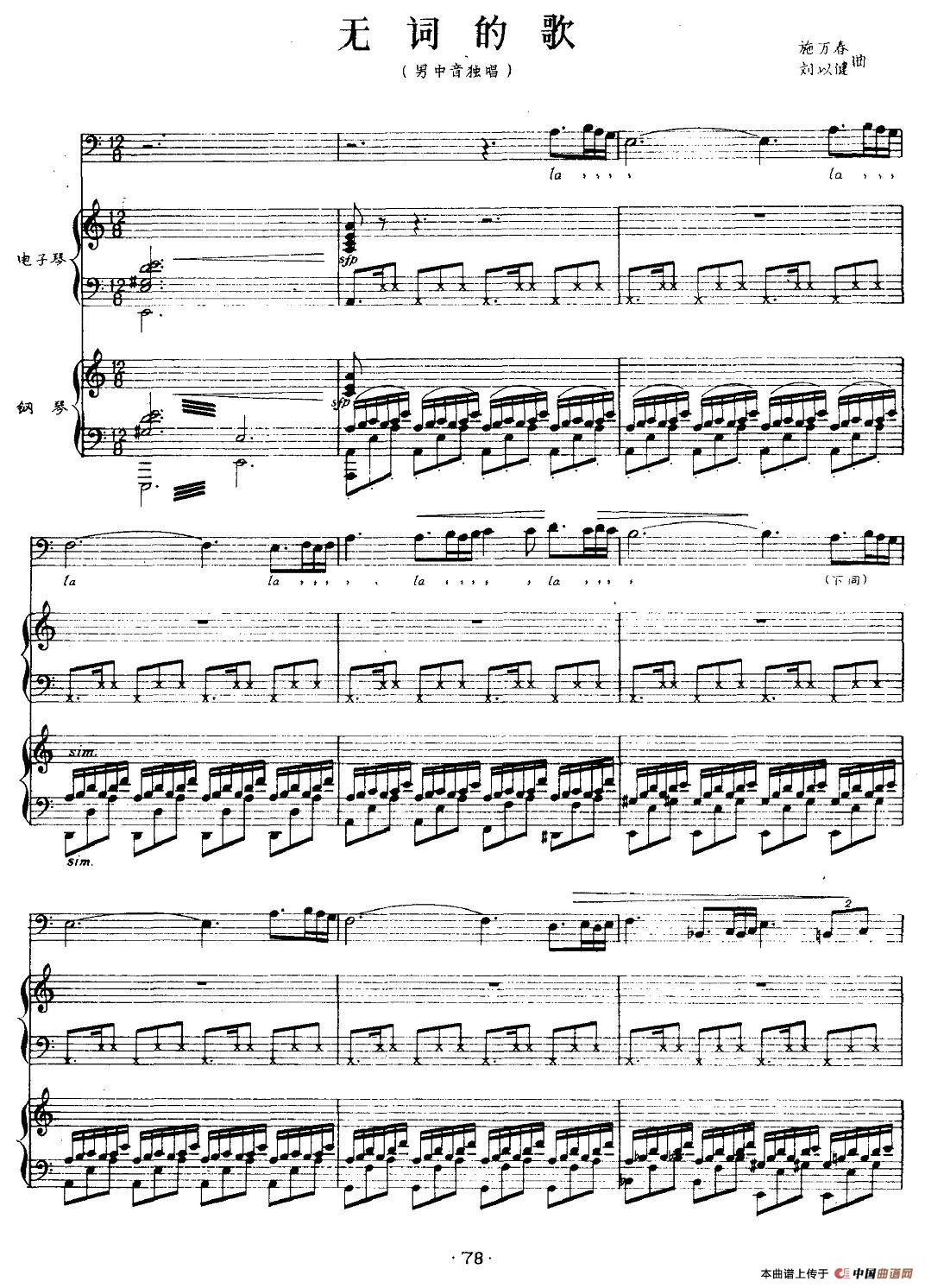 无词的歌(电子琴+钢琴 伴奏谱)相关五线谱