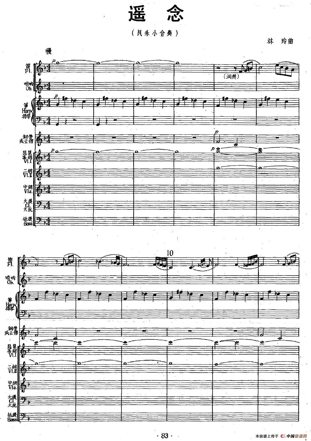 遥念(民乐小合奏)相关五线谱