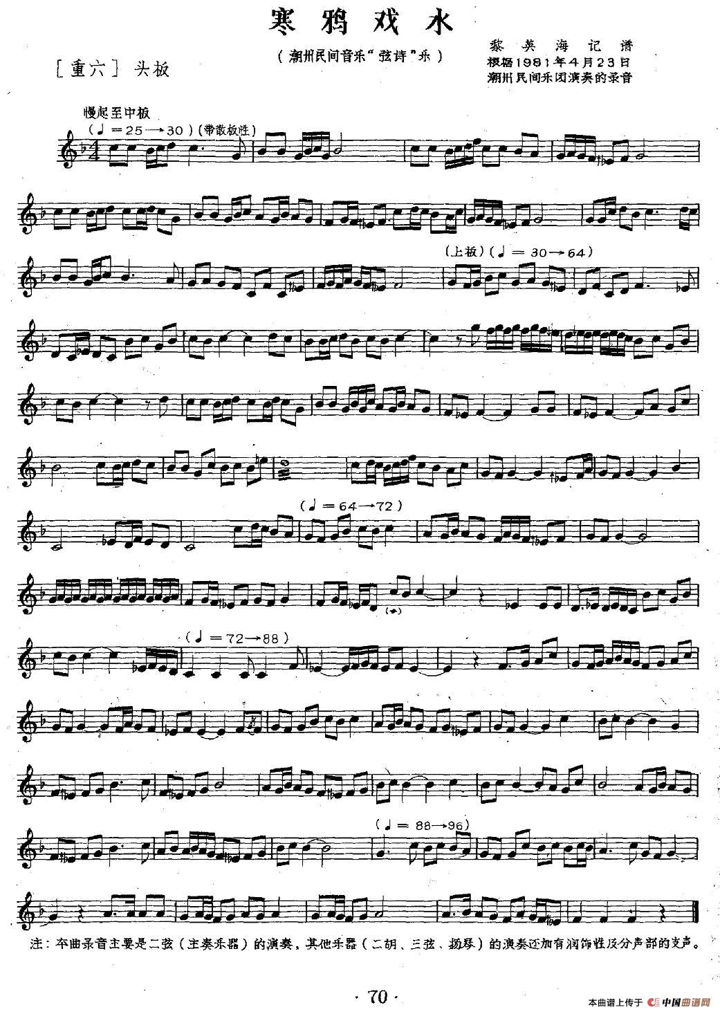 寒鸦戏水(潮州民乐、二弦)相关五线谱