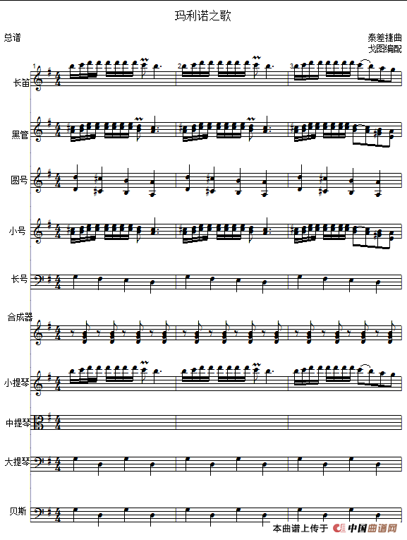 - 彩云追月(大提琴、琵琶与笛子主旋合成谱)