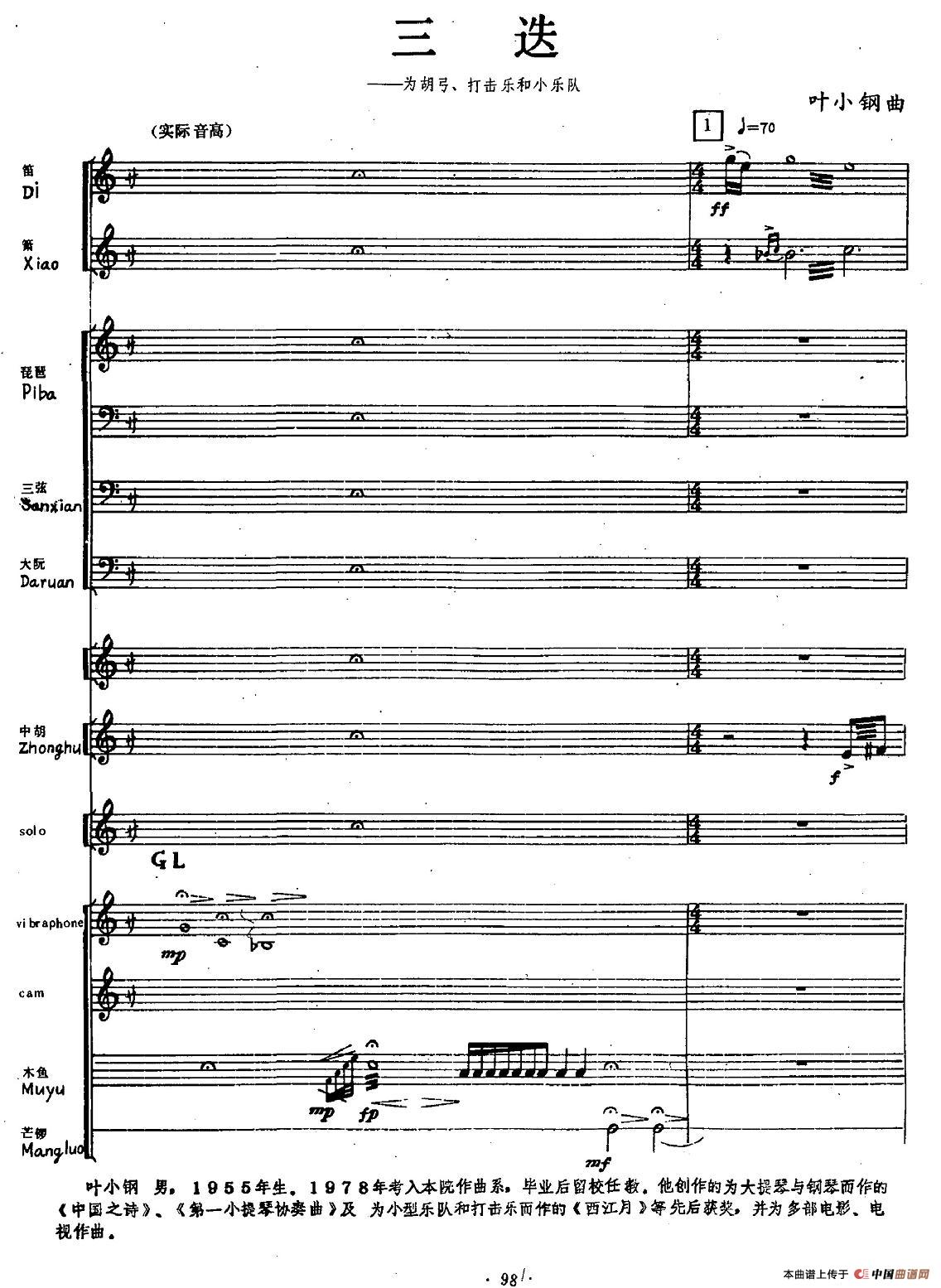 三迭(胡弓+打击乐+小乐队)相关五线谱