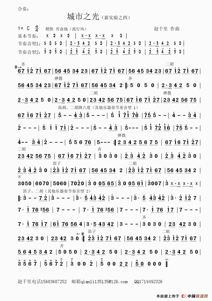 赵千里曲谱推荐让心去遨游乡情(爵士风格的民乐小合奏)天下长安(李映春词 赵千里曲)和平万岁(胡泽民词 赵千里曲)乡情(爵士风格的民乐小合奏)春潮(民乐小合奏)林则徐,人民不会忘记欢庆(民乐小合奏)中国梦 华夏魂花园般的社区(爵士风格的民乐小合奏)奉献之星(爵士风格的民乐小合奏)施甸有个金布朗争上游(乐器小合奏)奉献之星(爵士风格的民乐小合奏)茂密的树林(爵士风格的民乐小合奏)江山睡美人昆山之恋茂密的树林(爵士风格的民乐小合奏)