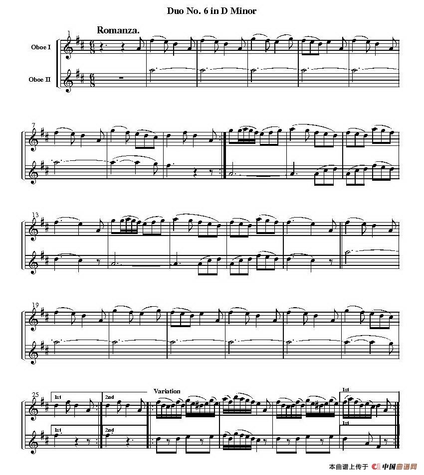 Duo No.6 in d Minor(双簧管二重奏)相关五线谱