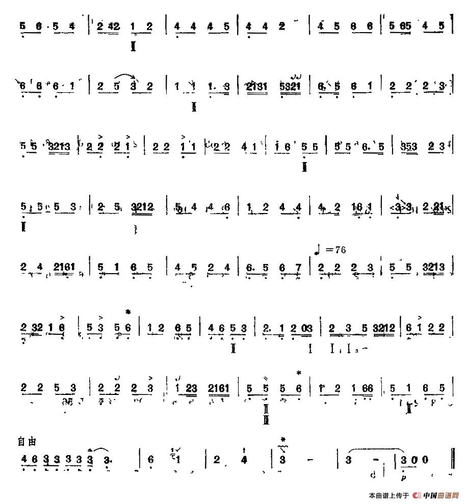 黄鹂调(三弦)相关五线谱