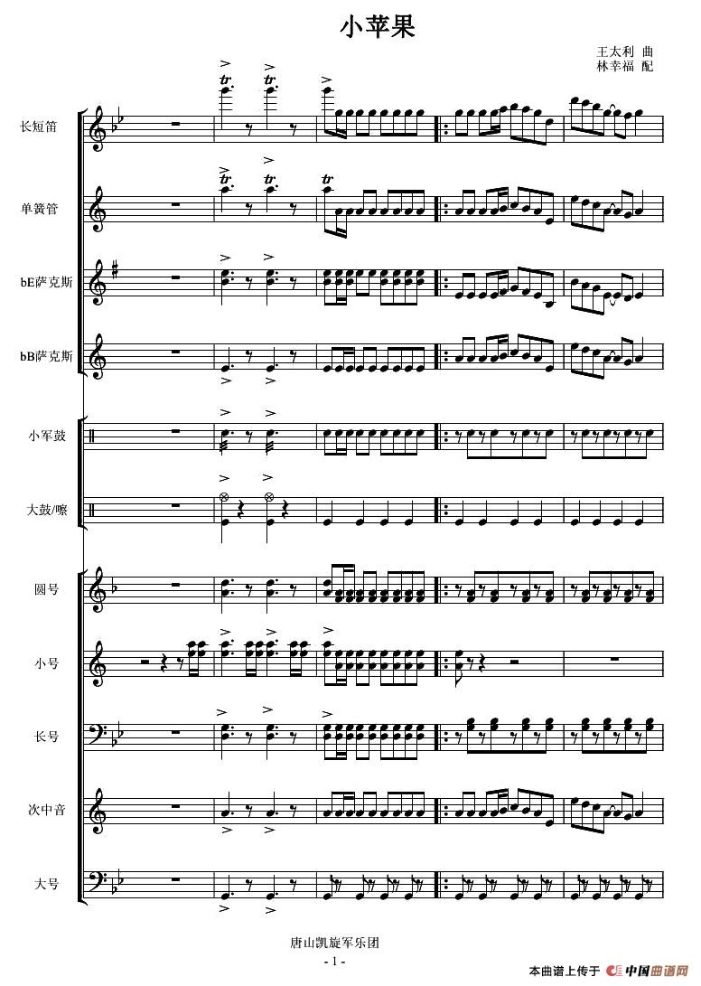 小苹果(管乐演奏总谱)相关五线谱