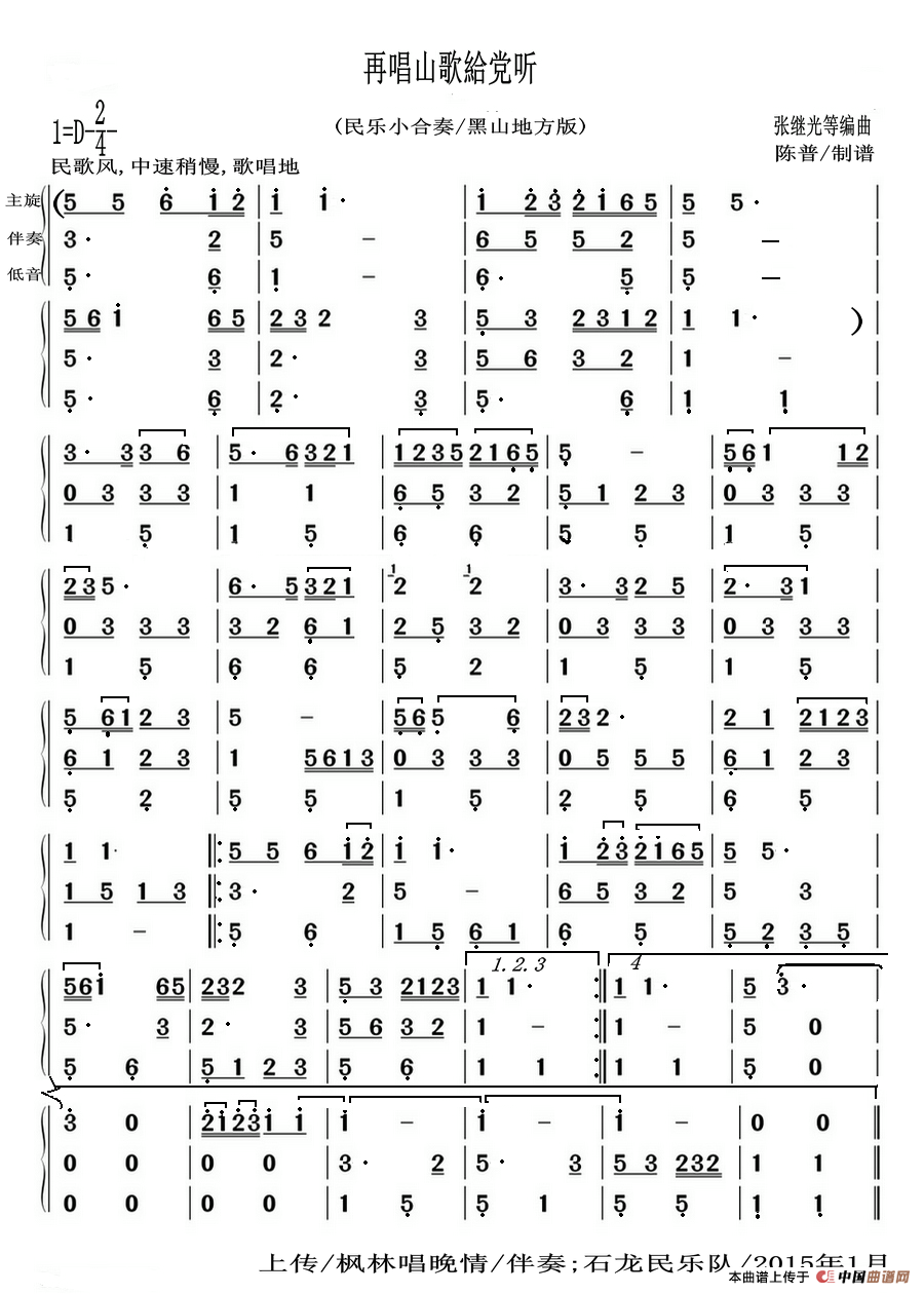 再唱山歌給党听(民乐小合奏)(黑山地方版)相关五线谱