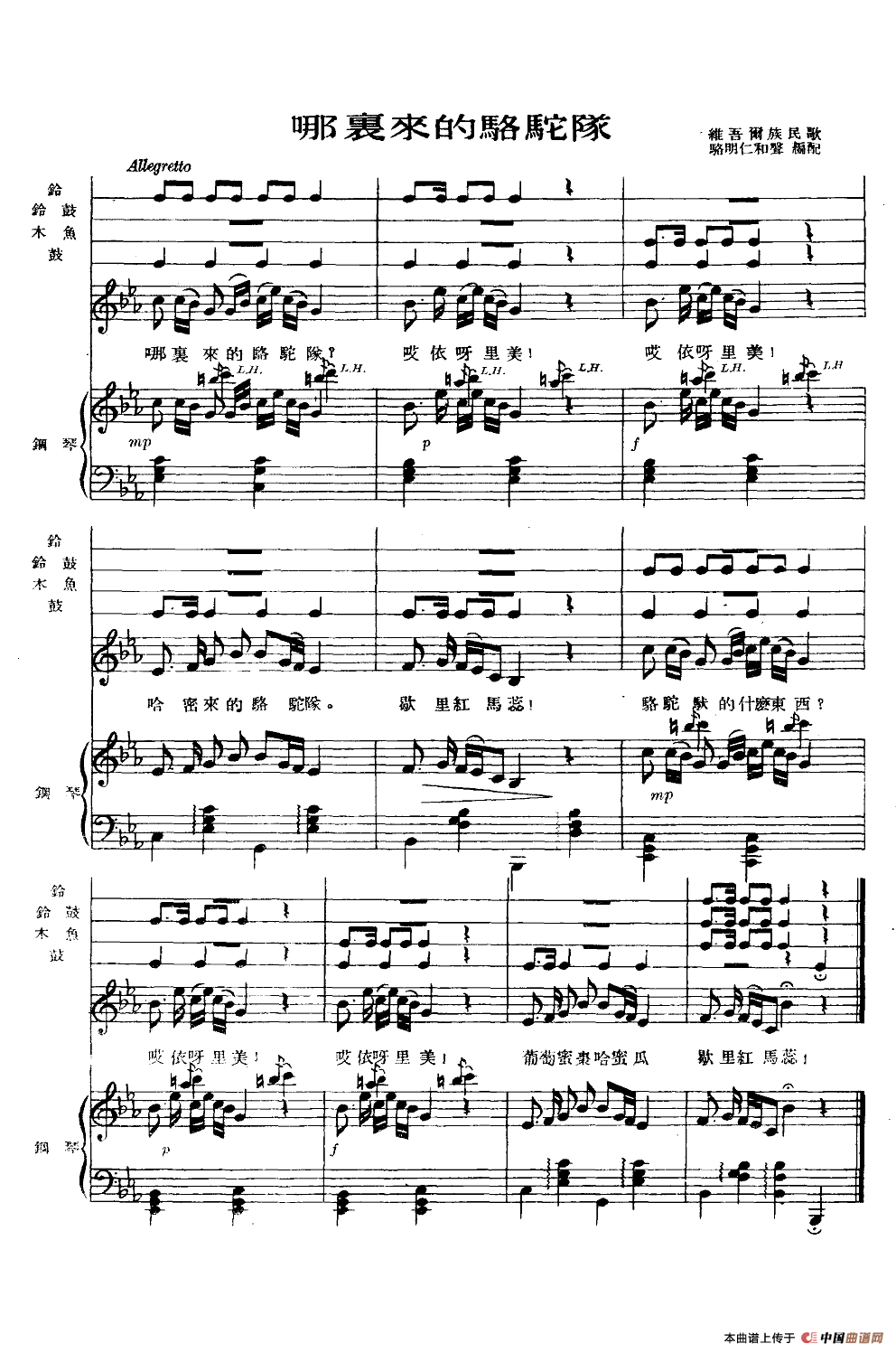 哪里来的骆驼队(维吾尔族民歌)(打击乐+正谱)相关五线谱