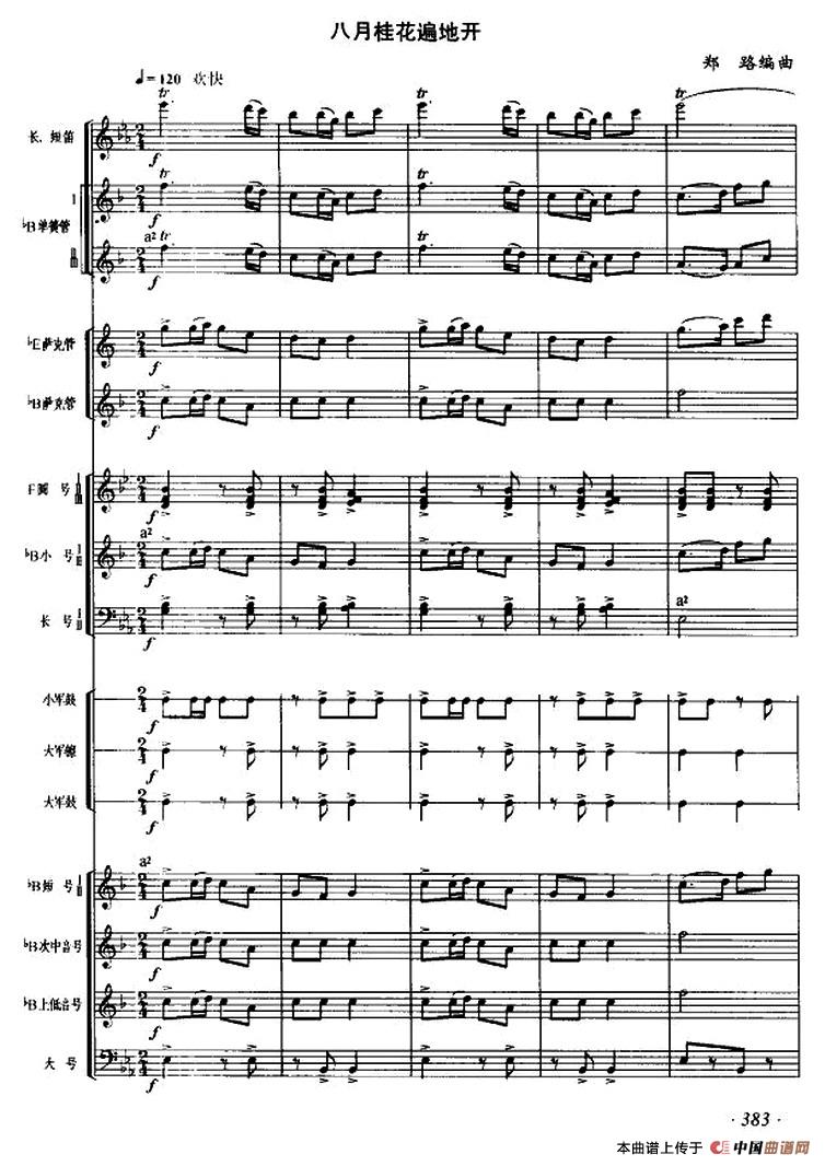 八月桂花遍地开(管乐合奏、总谱)相关五线谱