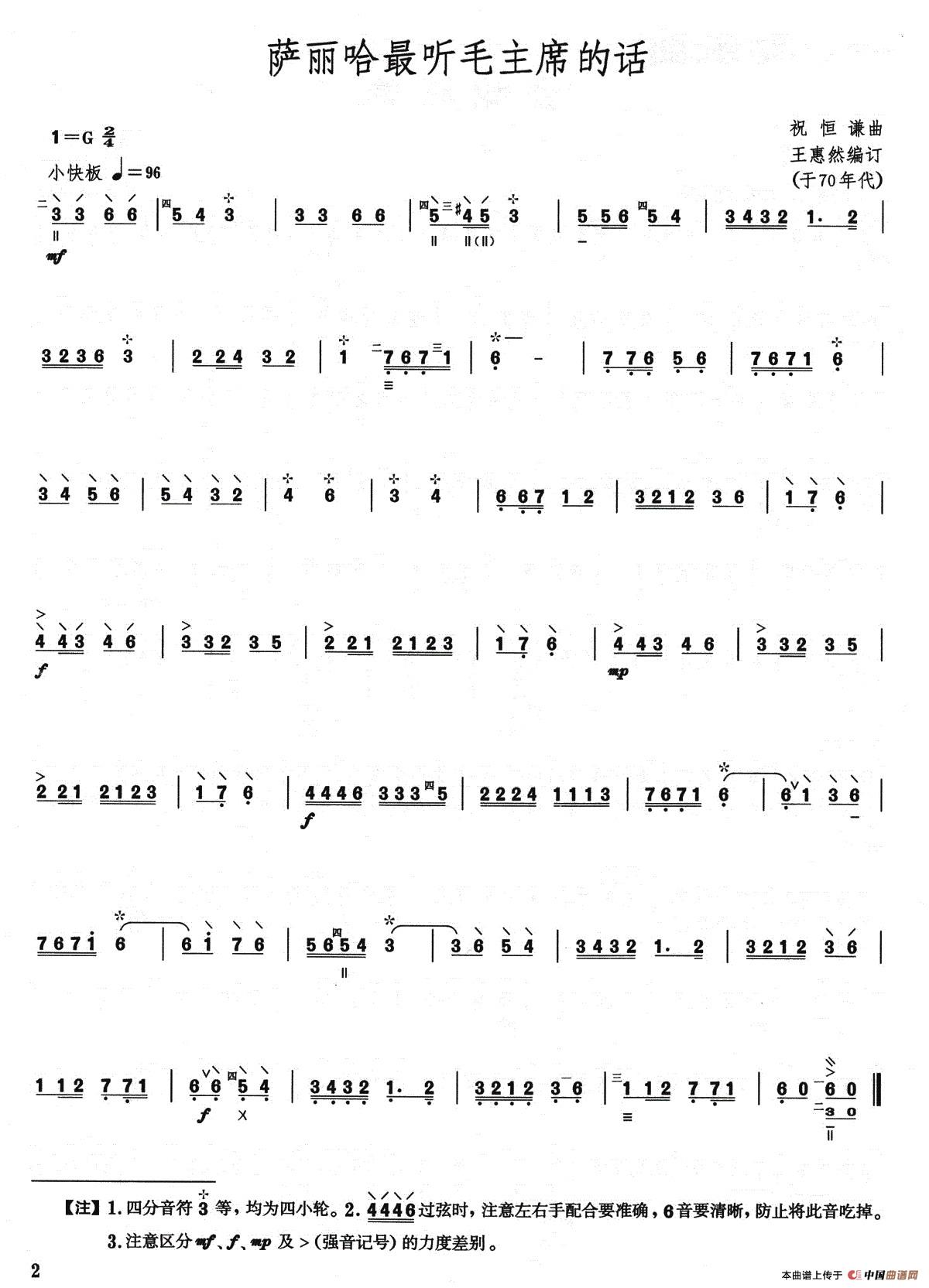 萨丽哈最听毛主席的话(柳琴)相关五线谱