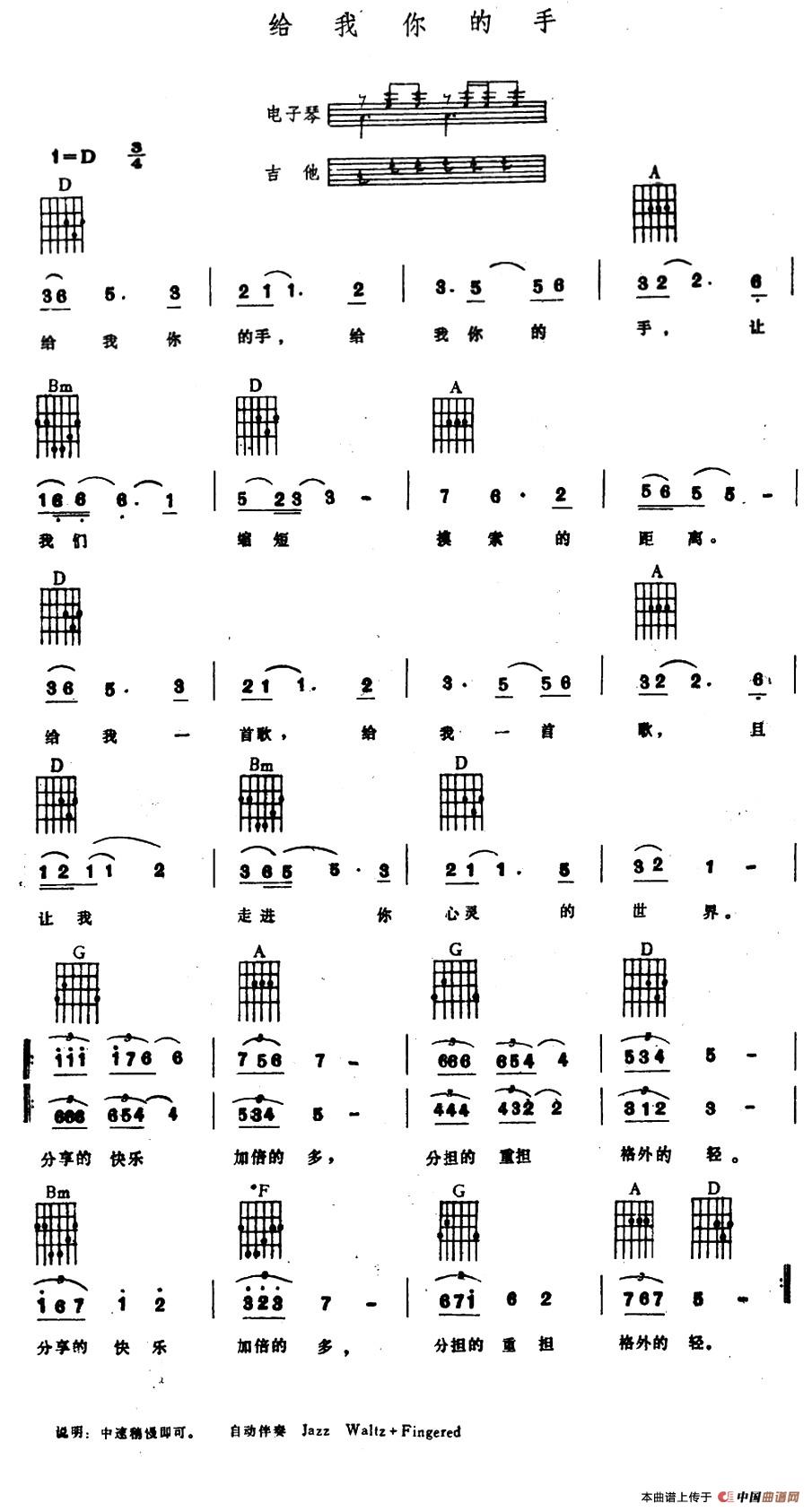 给我你的手(电子琴吉他弹唱谱)