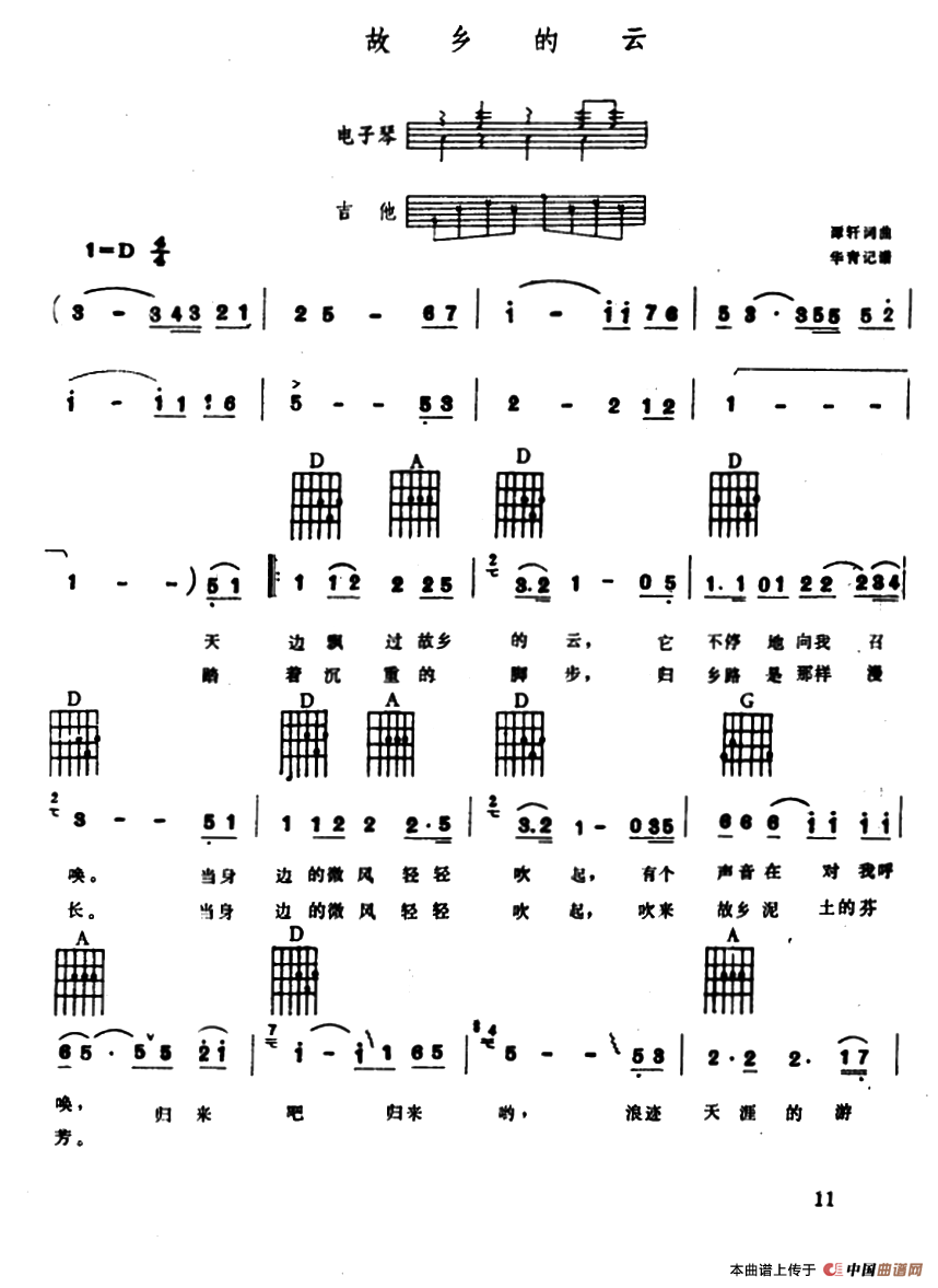 故乡的云(电子琴吉他弹唱谱)