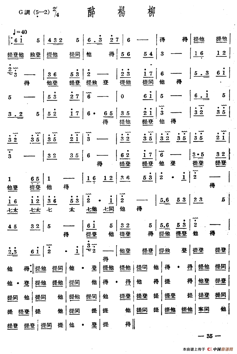 杨柳枝(据《九宫大成》谱译配、线简谱混排版)