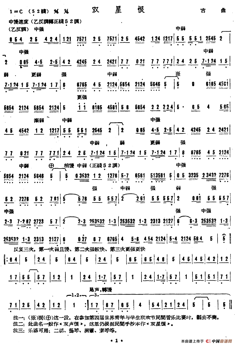 双星恨(广东音乐)相关五线谱