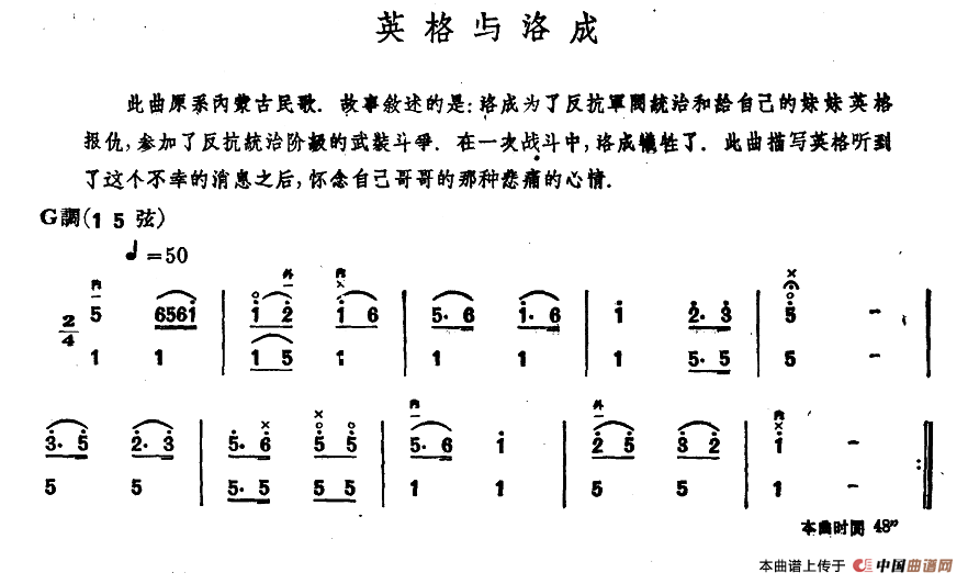 英格与洛成(内蒙四弦独奏曲)相关五线谱