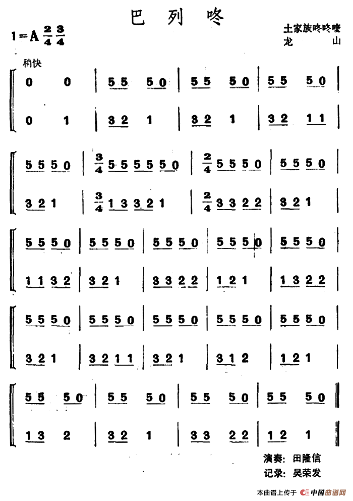 巴列咚(土家族咚咚喹)相关五线谱