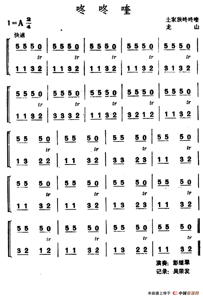 咚咚喹(土家族咚咚喹)相关五线谱