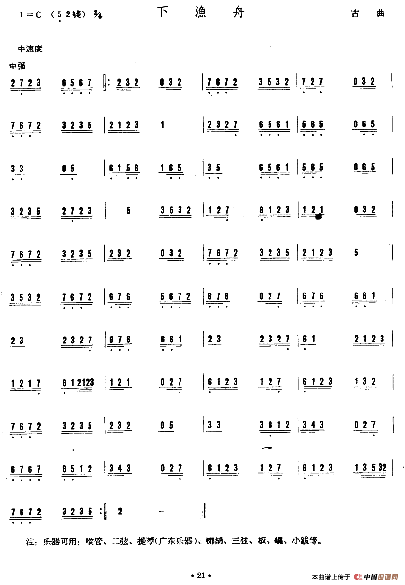 下渔舟(广东音乐)相关五线谱