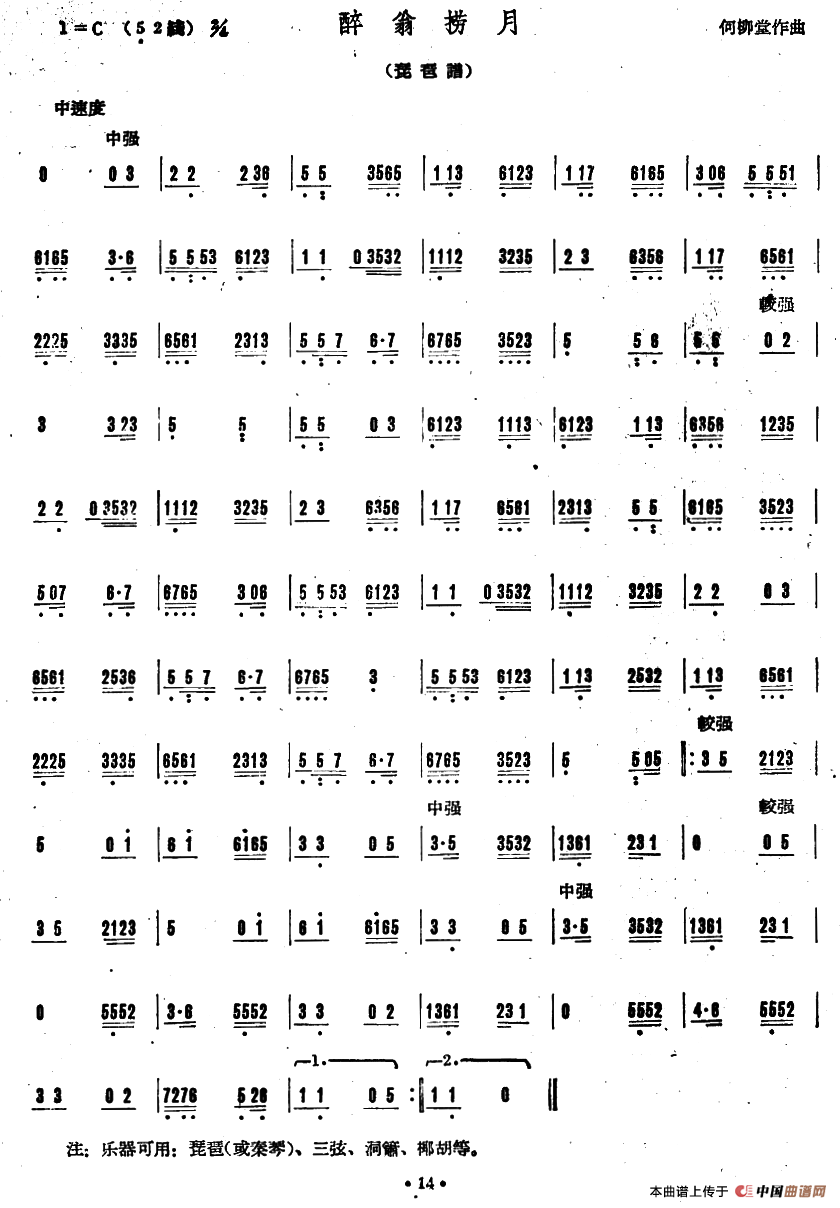 醉翁捞月(广东音乐)相关五线谱