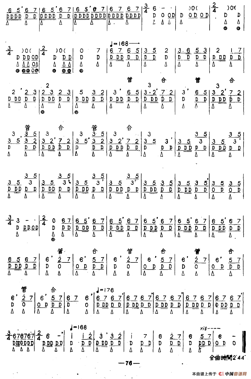 彩云追月(扬琴、中胡与笛子主旋合成谱)