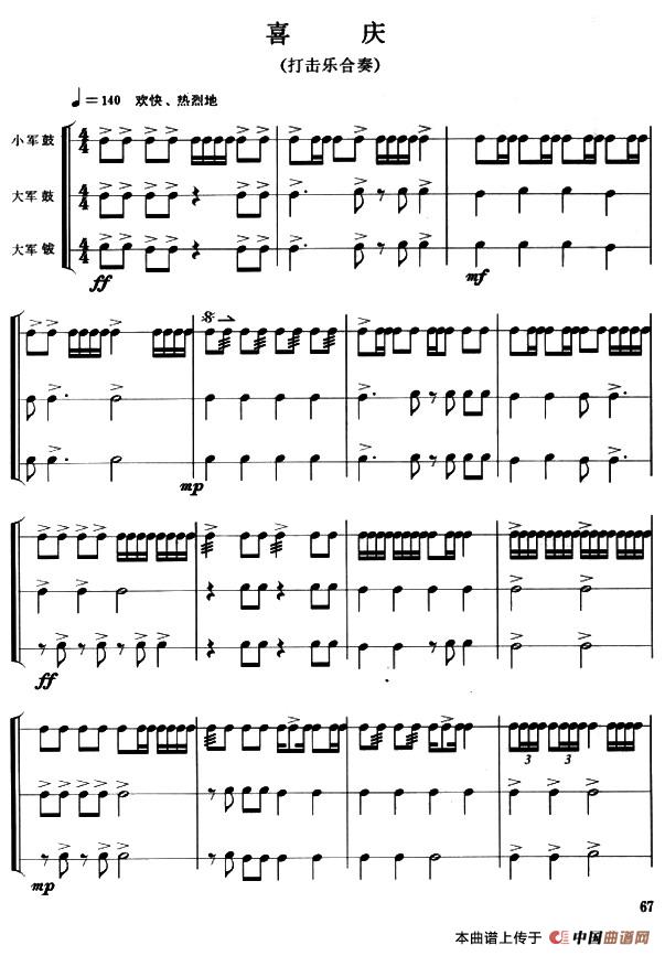 喜庆(打击乐合奏)相关五线谱