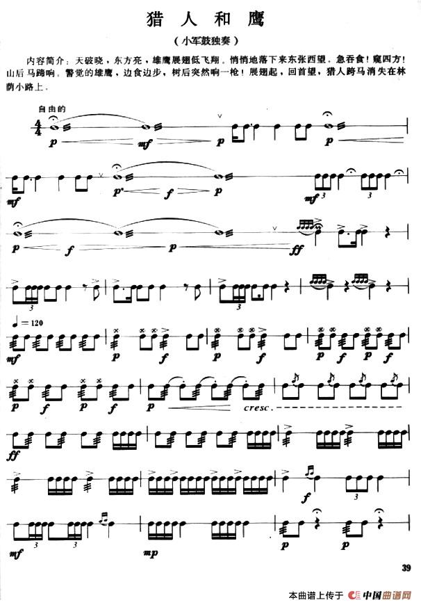 猎人和鹰(小军鼓独奏)相关五线谱