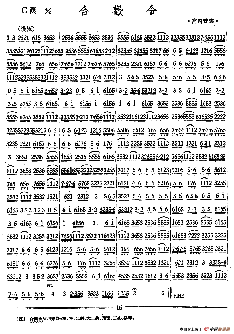 合欢令(丝竹乐谱)