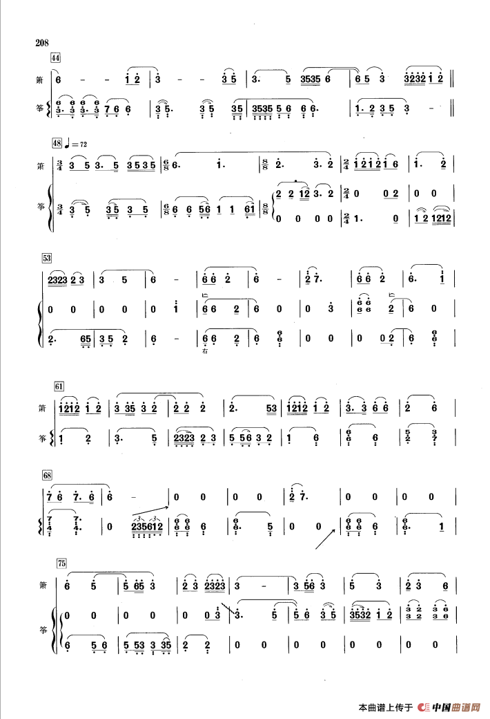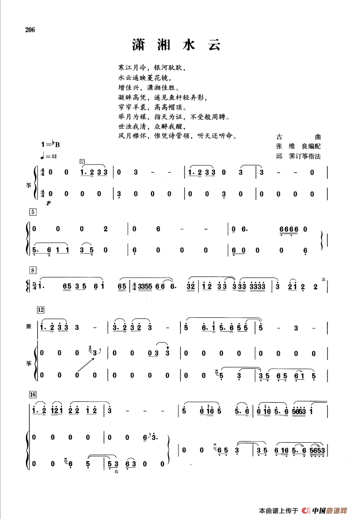 潇湘水云(箫+筝)相关五线谱