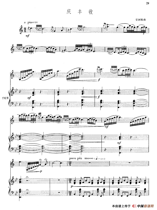 庆丰收(单簧管+手风琴伴奏)相关五线谱