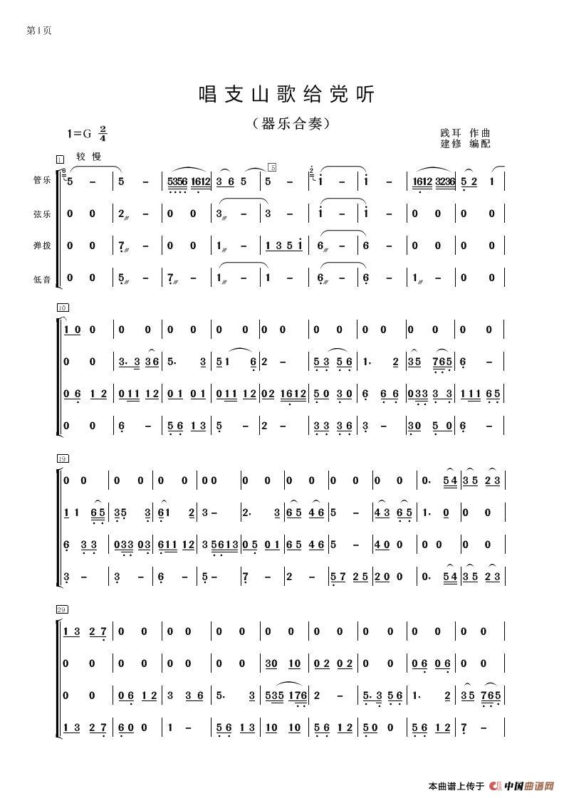 唱支山歌给党听(器乐合奏、建修编配版)相关五线谱
