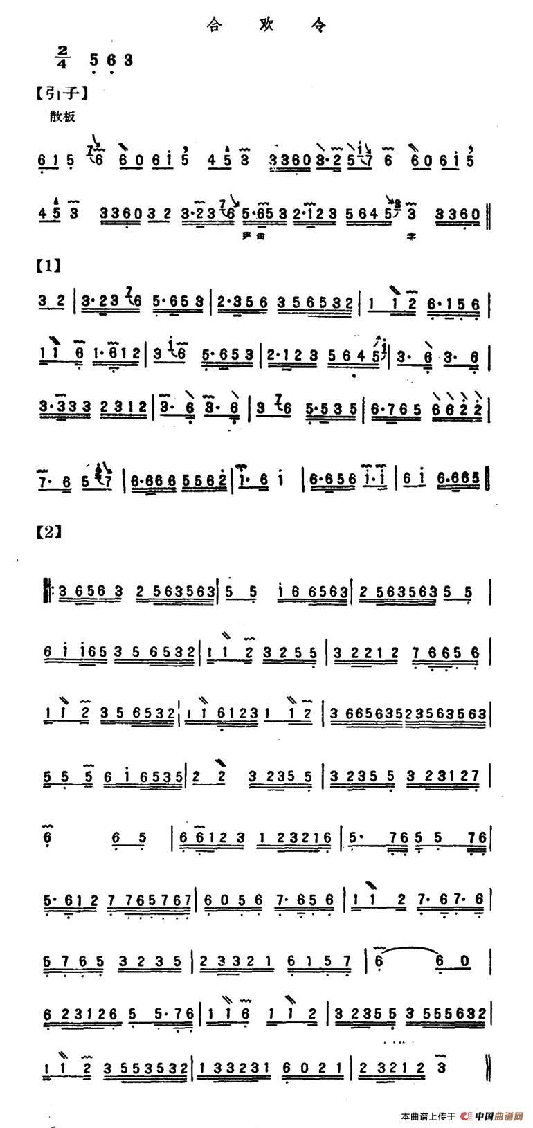 合欢令(三弦)相关五线谱