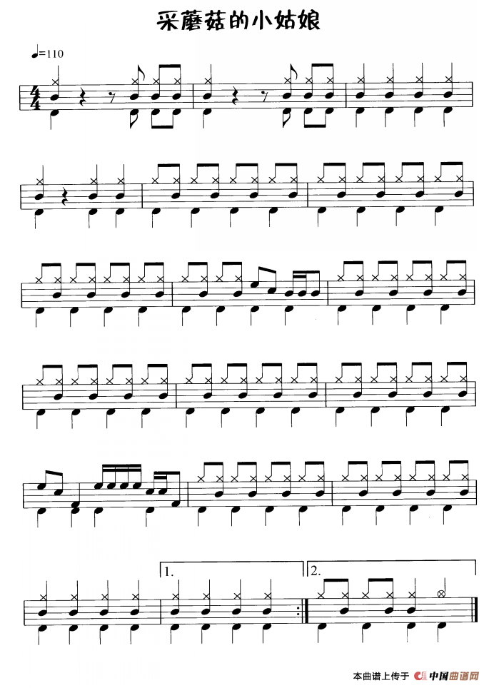采蘑菇的小姑娘(鼓谱)相关五线谱