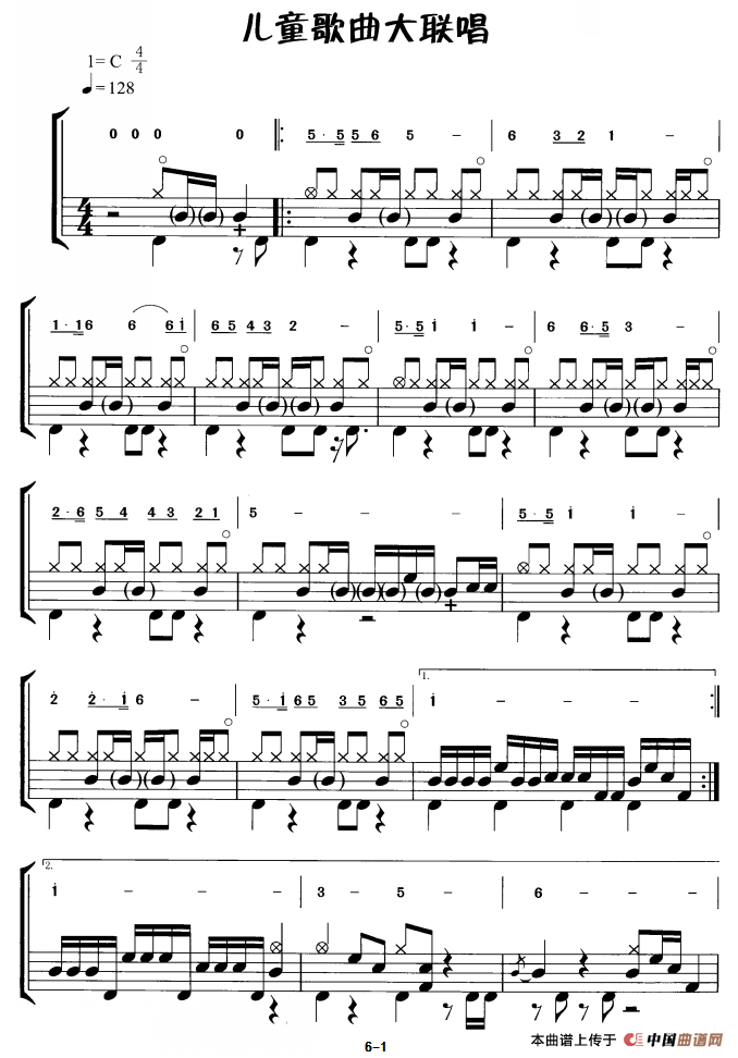 儿童歌曲大联唱(鼓谱)相关五线谱