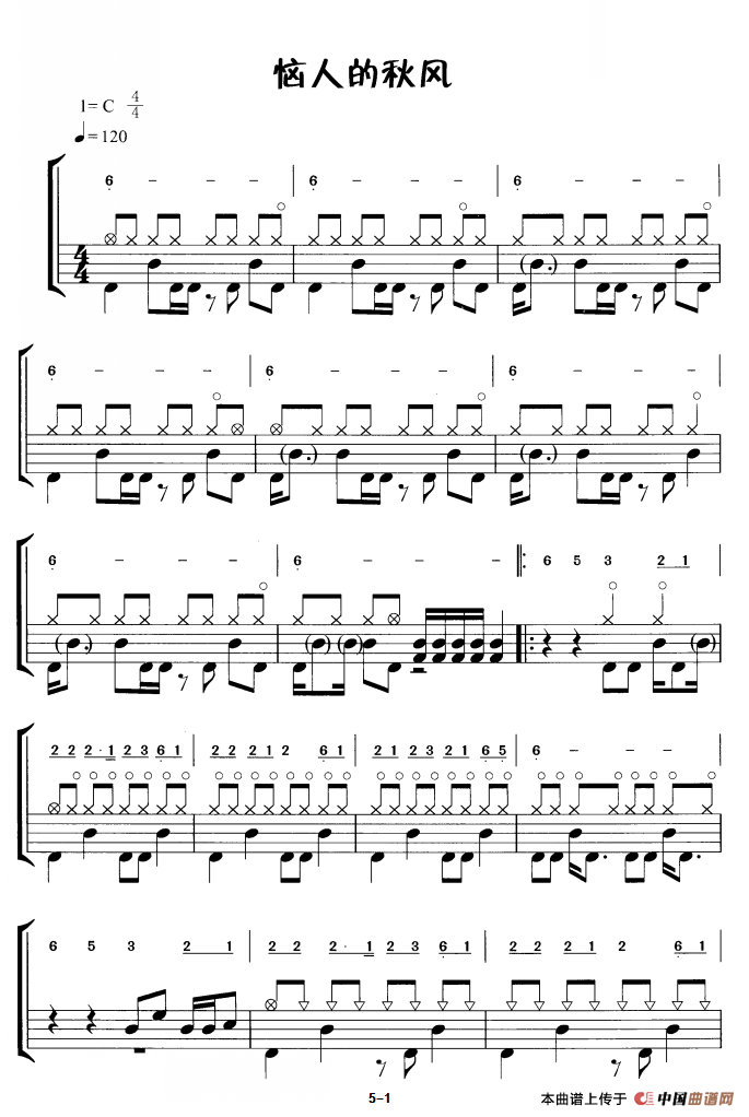恼人的秋风(鼓谱)相关五线谱