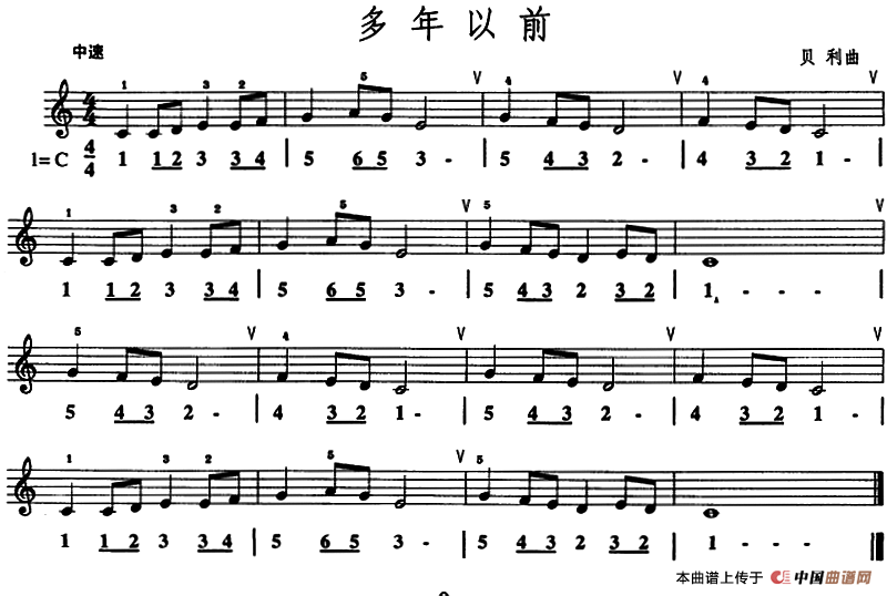 贝利曲谱推荐学琴之路练习曲78、很久以前的故事迪亚贝利小奏鸣曲(Op.151 No.1)[英]多年以前考级九级曲目:多年以前很久很久以前往事难忘(吉他六线谱)多年以前(线简谱混排版)很久以前([英]贝利作曲版)萨克斯练习曲合集(3—22)若拍起的6/8拍练习