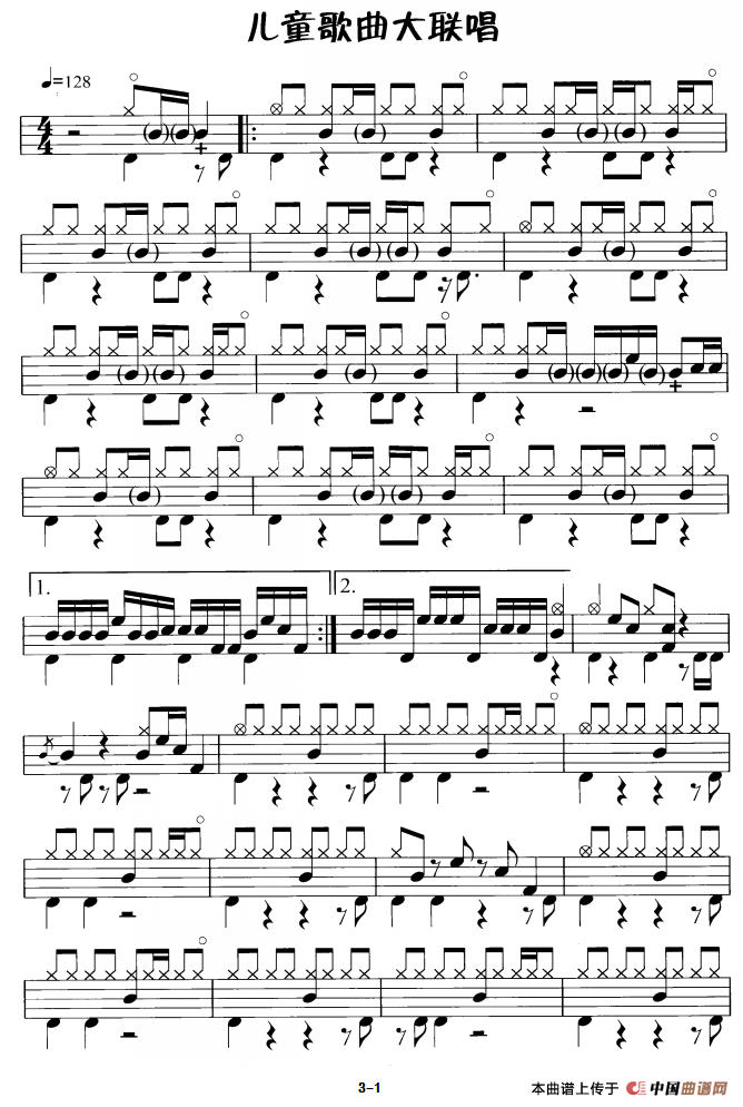 儿童歌曲大联唱(鼓谱)相关五线谱