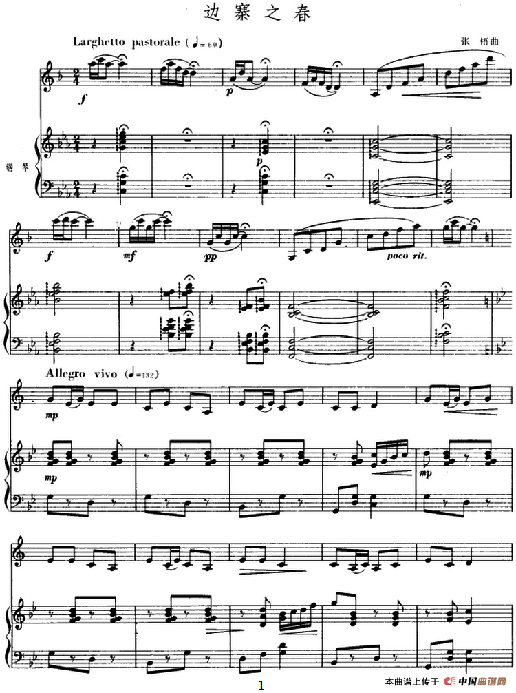 边寨之春(单簧管+钢琴伴奏)相关五线谱