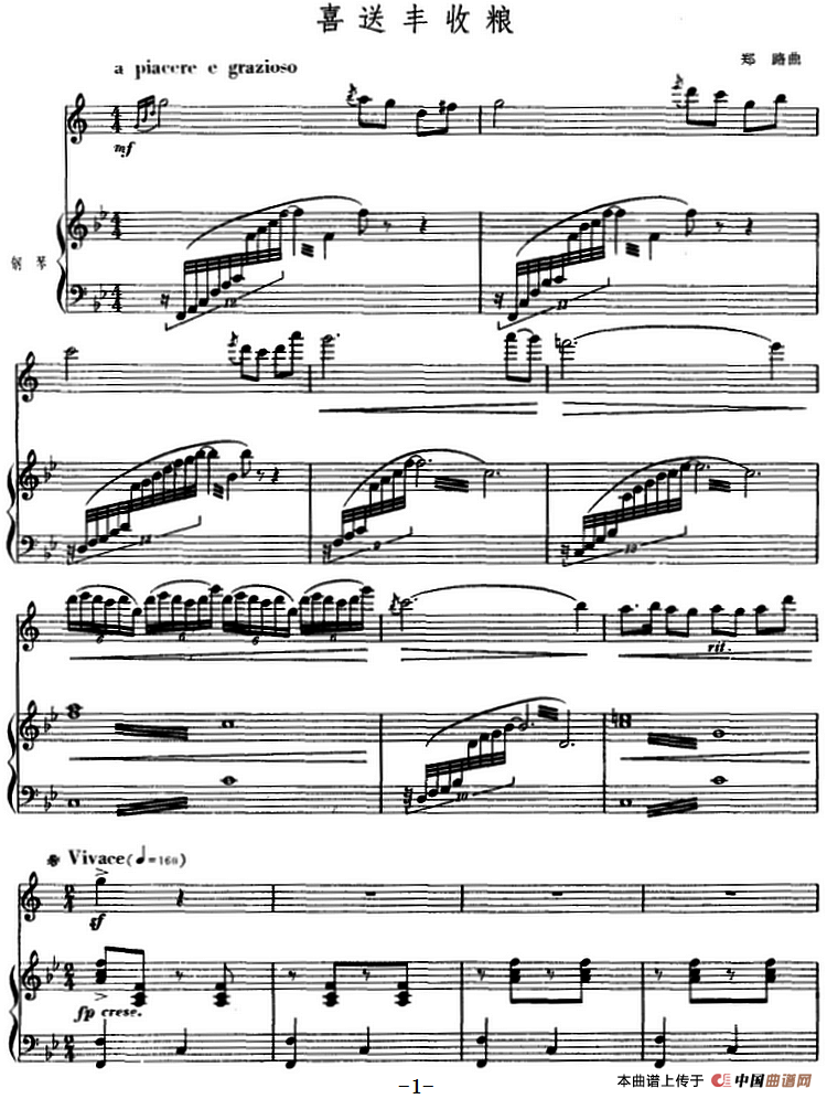郑路曲谱推荐祝你幸福(郑路曲)小飞鸽欢送进行曲(小号1)线北京喜讯到边寨(高音笙分谱)1北京喜讯到边寨欢送进行曲(主旋)线检阅进行曲(合唱)北京喜讯到边寨(梆笛分谱)1我热爱今天的好时代北京喜讯到边寨欢迎进行曲(次中萨克管)简北京喜讯到边寨(柳琴分谱)2北京喜讯到边寨(中音笙分谱)1八月桂花遍地开(管乐合奏、总谱)草原,我的故乡(电视片《草原风情》插曲)喜送丰收粮(单簧管+钢琴伴奏)红太阳照瑶寨(单簧管+手风琴)北京喜讯到边寨(柳琴分谱)1祝你幸福(三重奏)欢送进行曲(小号1&2)简