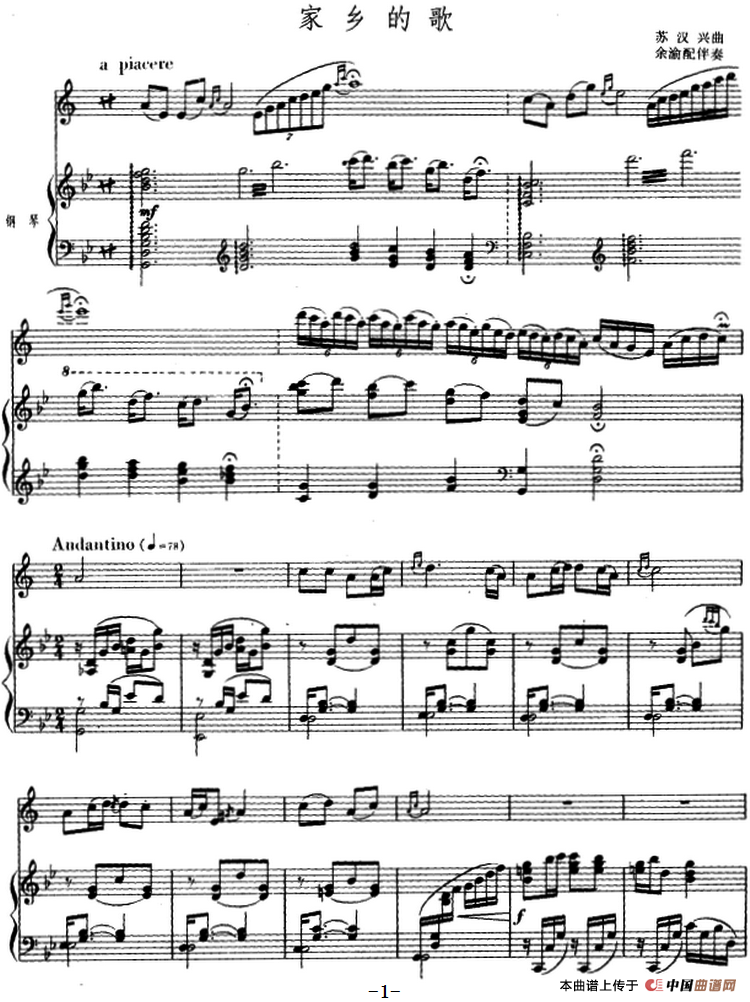 家乡的歌(单簧管+钢琴伴奏)相关五线谱