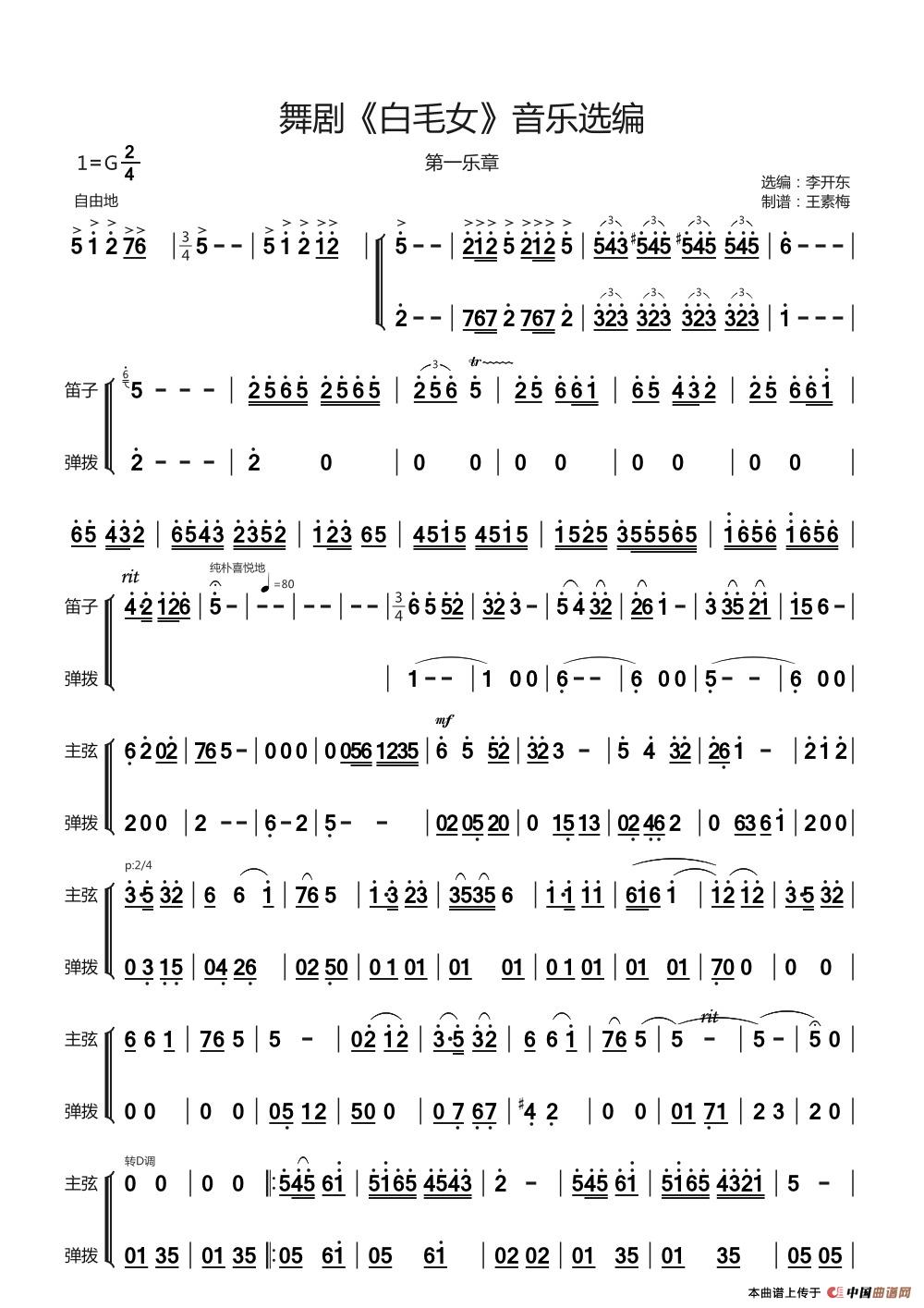 舞剧《白毛女》音乐选编(第一乐章)相关五线谱