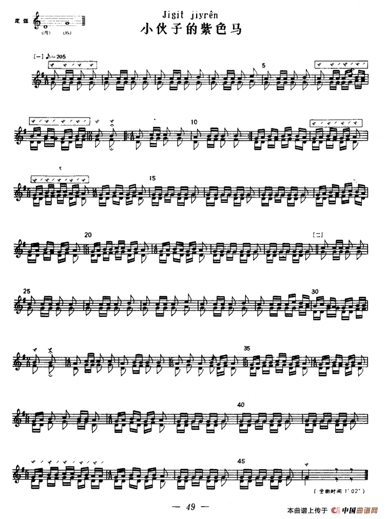 小伙子的紫色马(冬不拉)相关五线谱