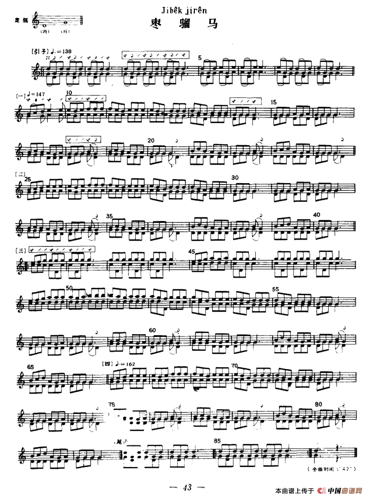 枣骝马(冬不拉)相关五线谱