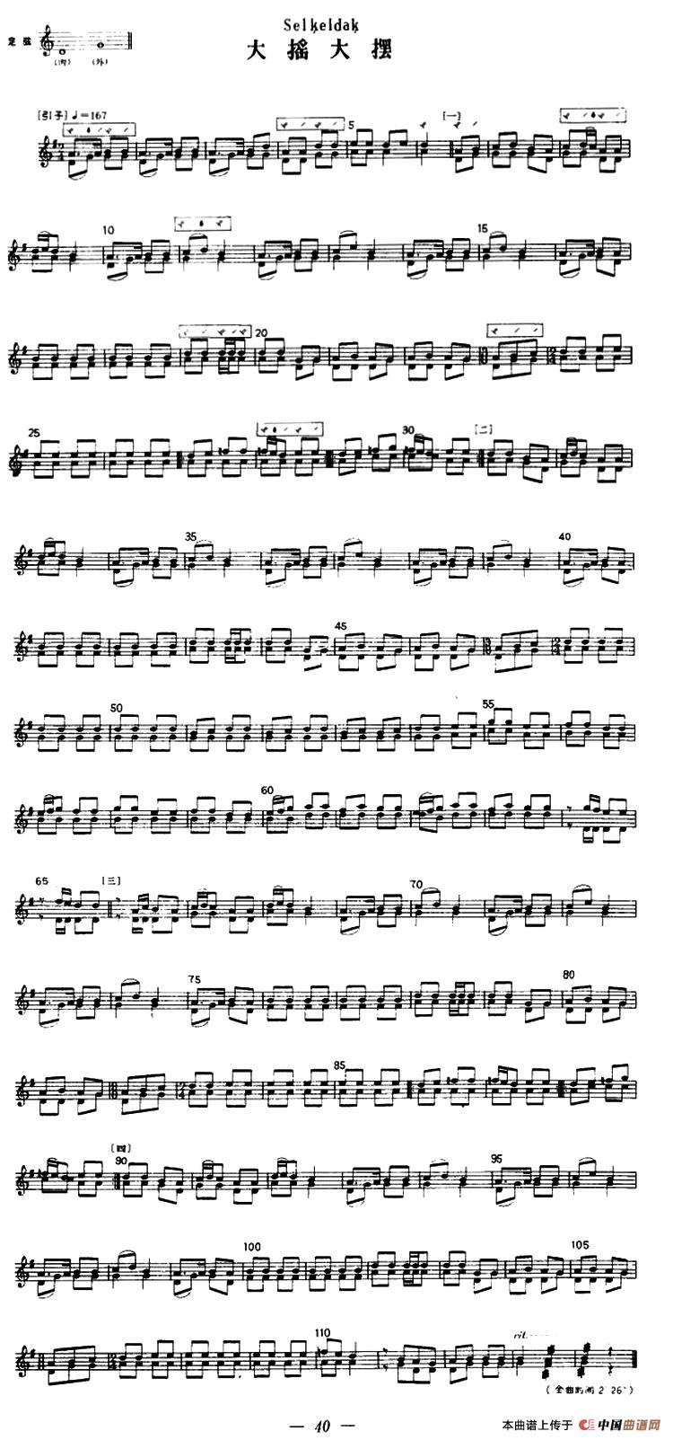 大摇大摆(冬不拉)相关五线谱