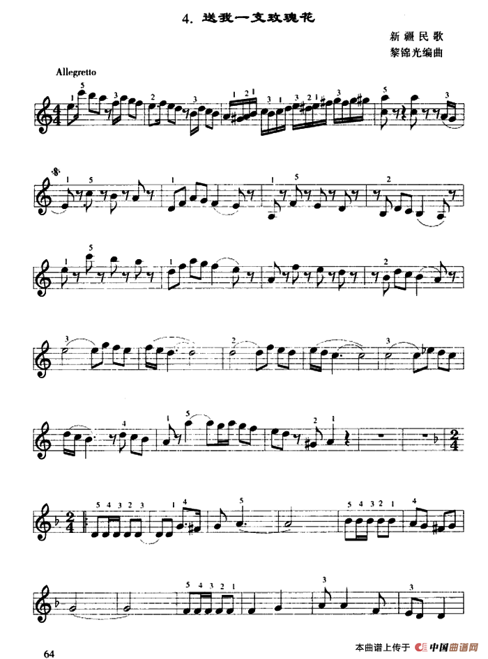 送我一支玫瑰花(口风琴谱)
