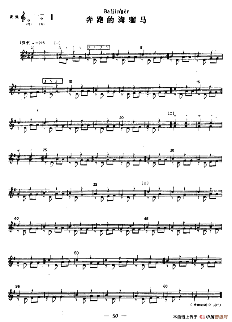 奔跑的海骝马(冬不拉)相关五线谱