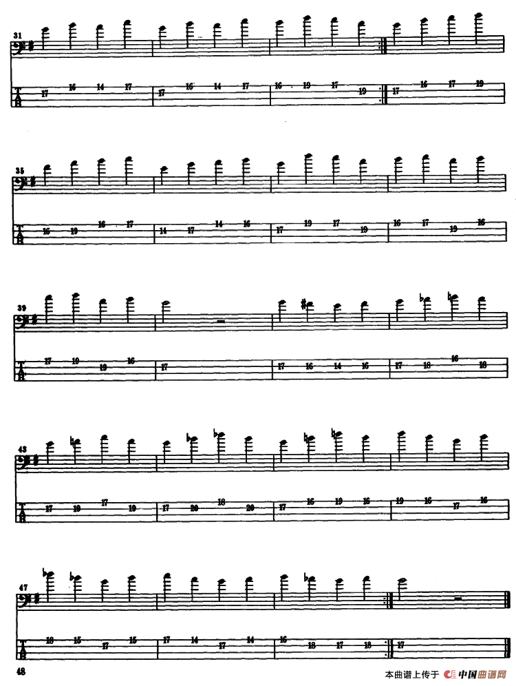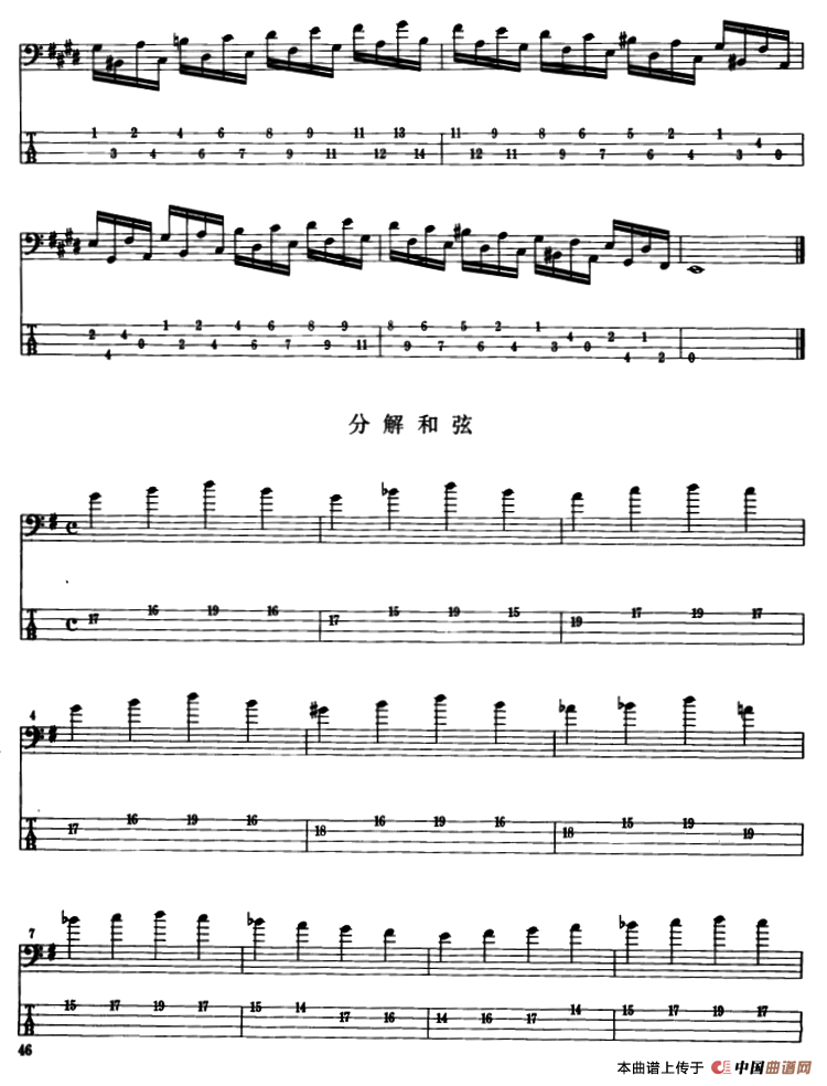 电贝司专业等级第六级(一、指导练习)相关五线谱