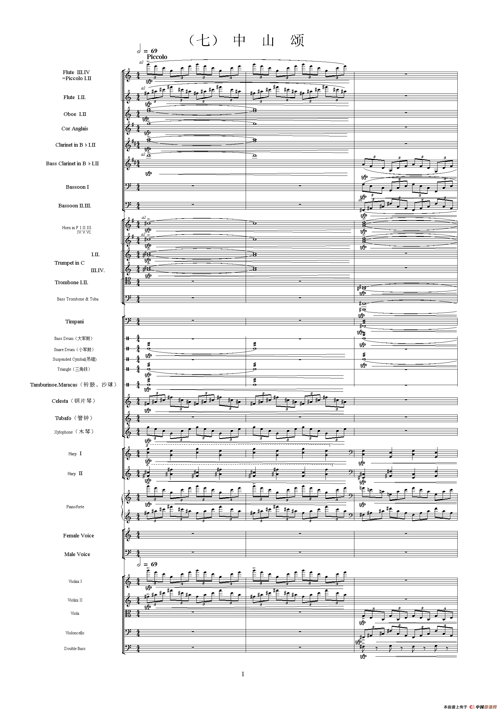- 波谷怀柔(《中山颂·交响组曲》之五)(交响乐队总谱)