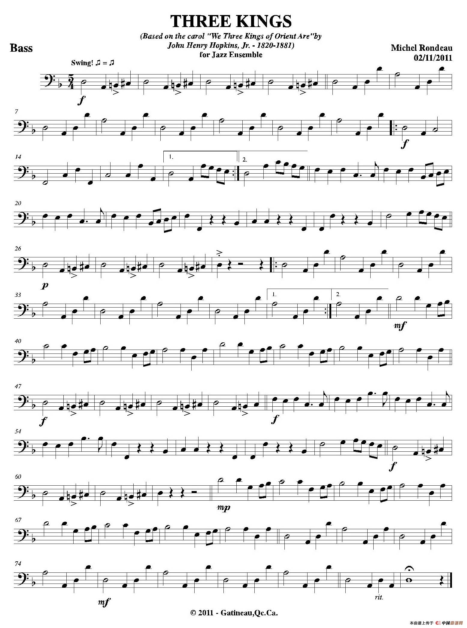 THREE KINGS(贝司分谱)相关五线谱