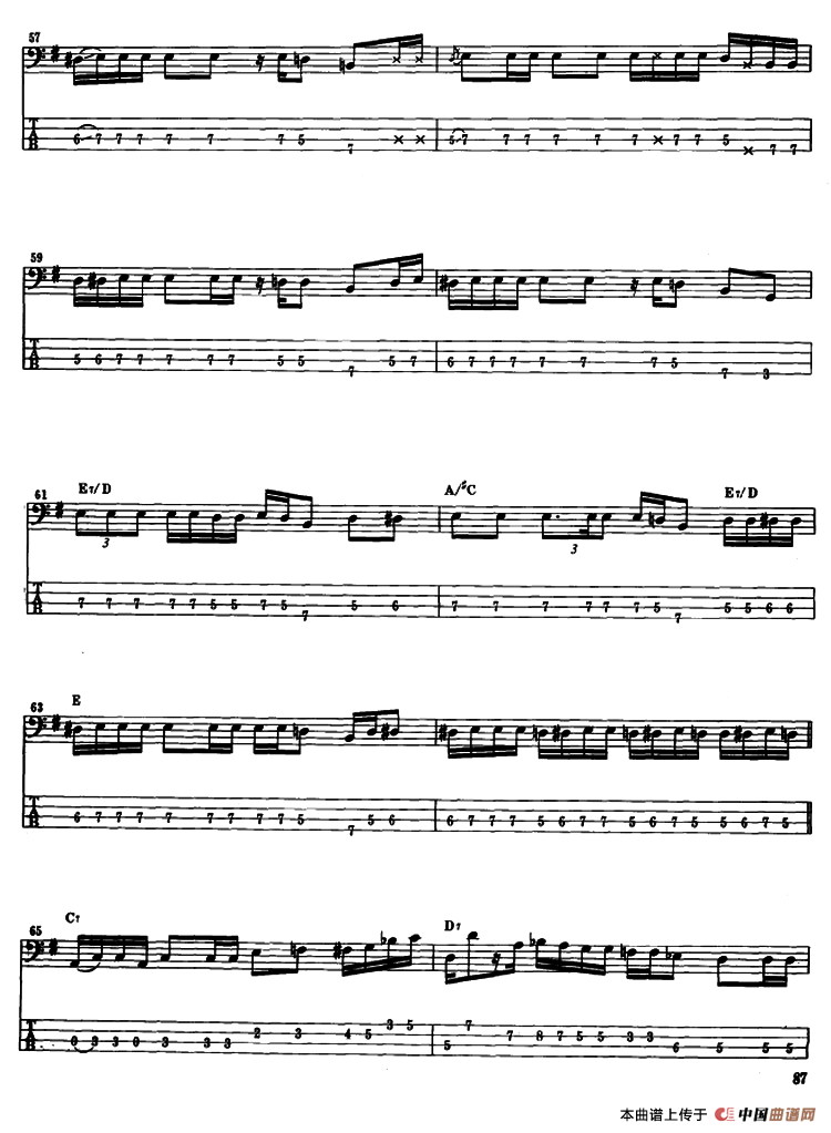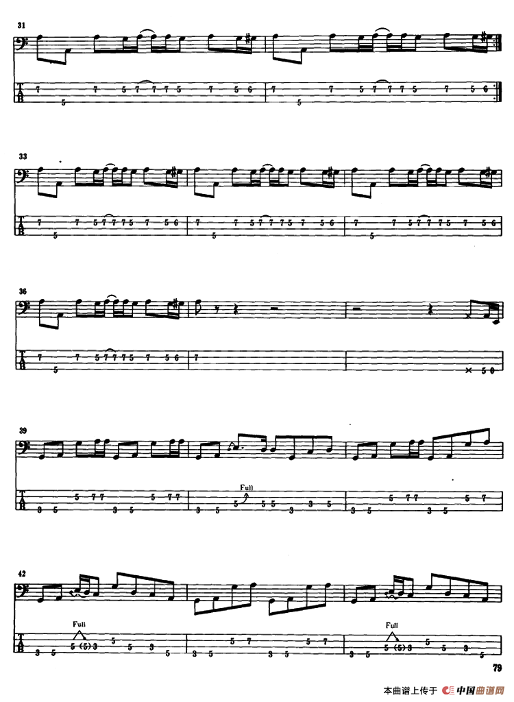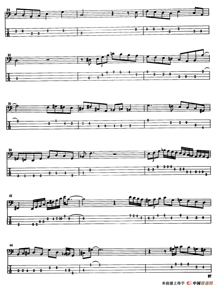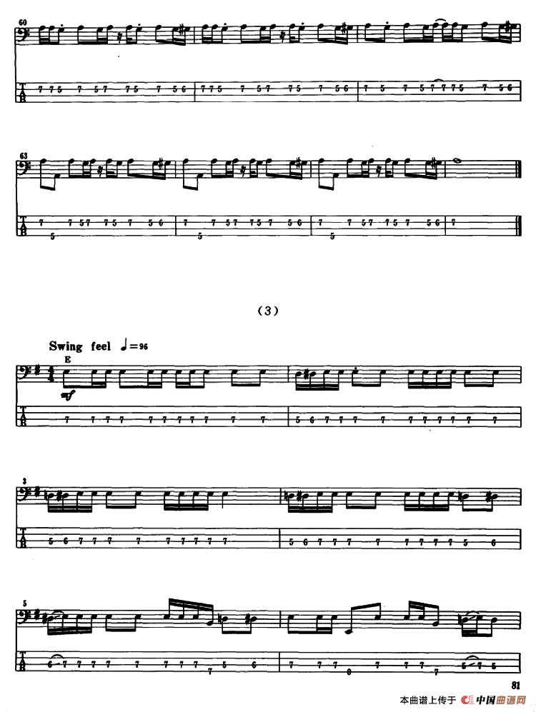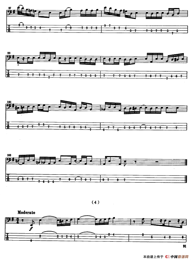 电贝司专业等级第六级(三、自选曲目)相关五线谱